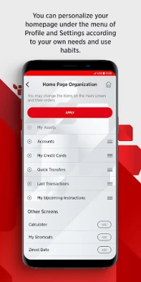 • You can easily get access to many information/basic products/transactions such as My Assets, Accounts, Cards, and Upcoming Instructions through the widgets on the homepage.