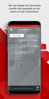 • You can track your last money transfers you made and bill/institution payments on one screen.