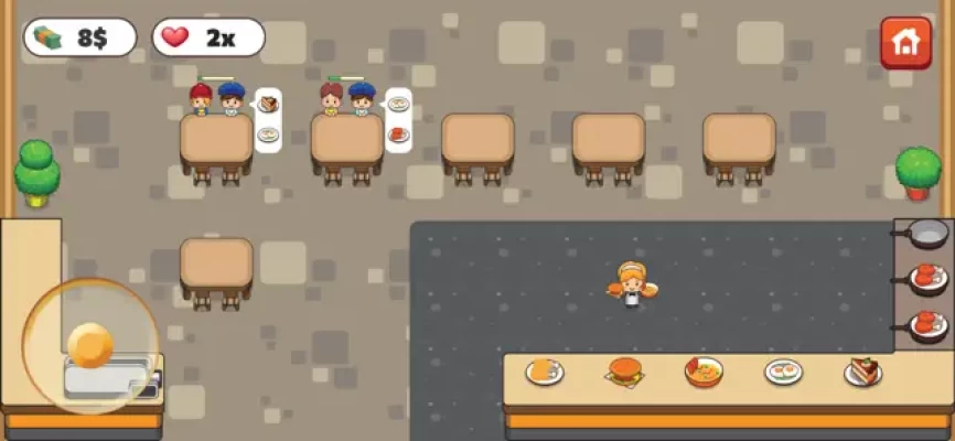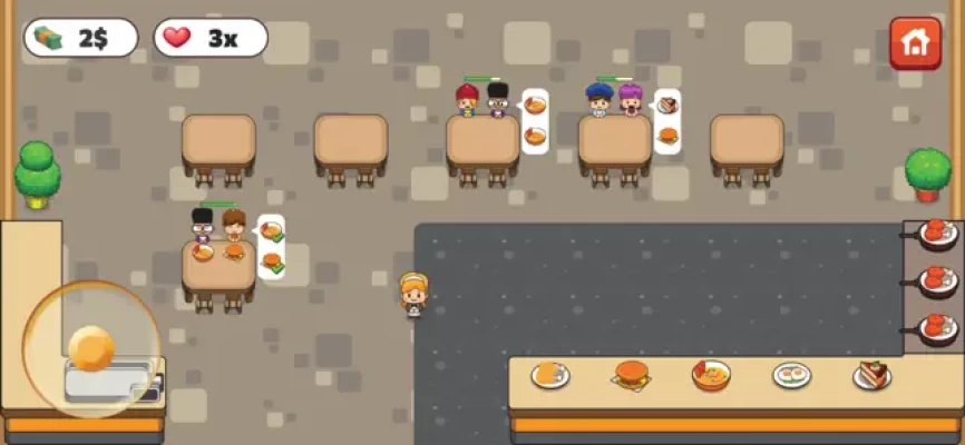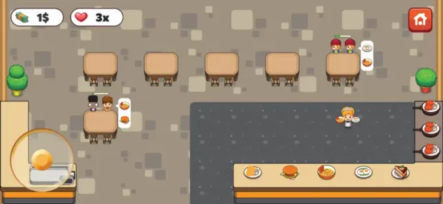 * Loss condition: each oder customer will have 1 time line. If the time runs out and the guest leaves, minus 1 heart, the game is over.