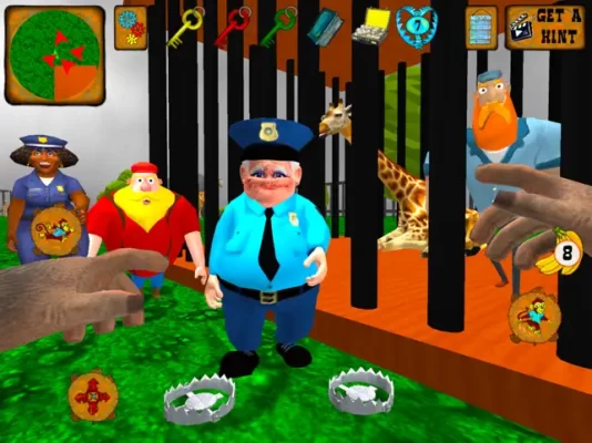 You play as a monkey that was caught in jungle and brought to the zoo. The boy who lives in the nearest neighborhood saw you in a cage near the zoo and let you out of it. You are a smart monkey and you were able to make contact with the boy. His name is John. He told you that the animals in this zoo are unhappy and that the guards are behaving suspiciously. You decide to find out what secrets this place hides.