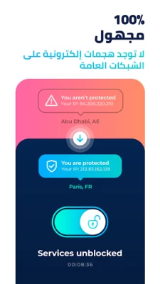 • سهولة الاستخدام: نقرة واحدة للحصول على اتصال آمن بالإنترنت